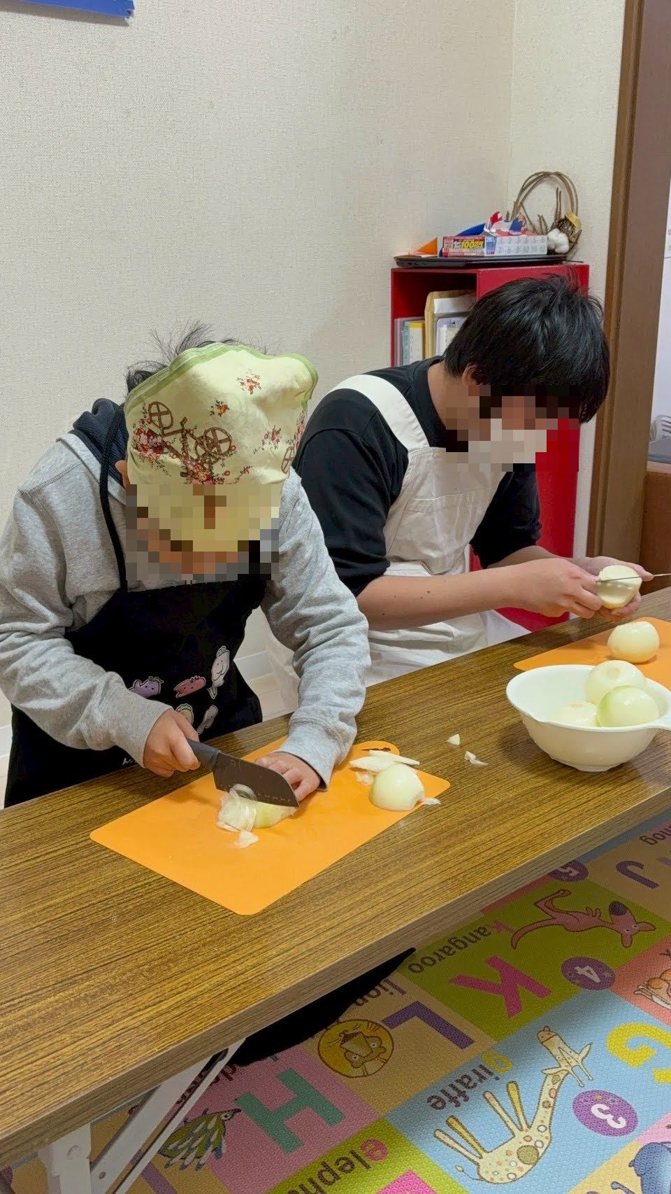 月に一回ほど、アネーラでは食育体験として土曜日など学校がお休みの日に自分たちでお昼ご飯を作っています。