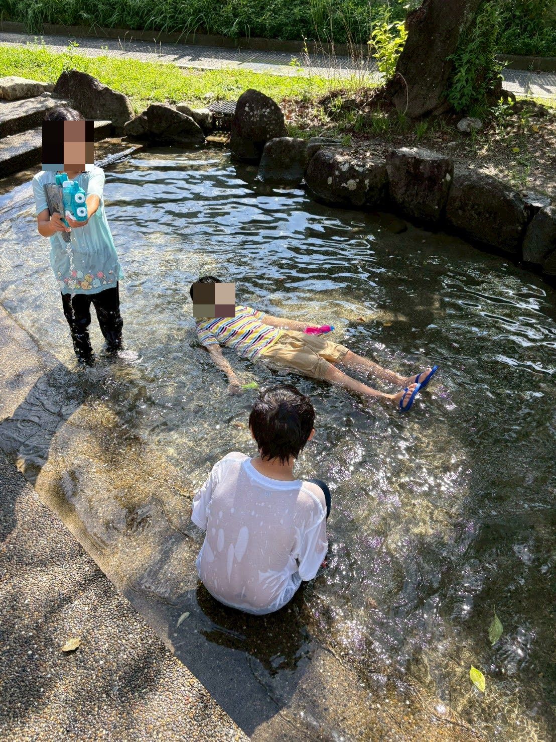 近くの公園に水が流れるようになると水遊びをするようになります。